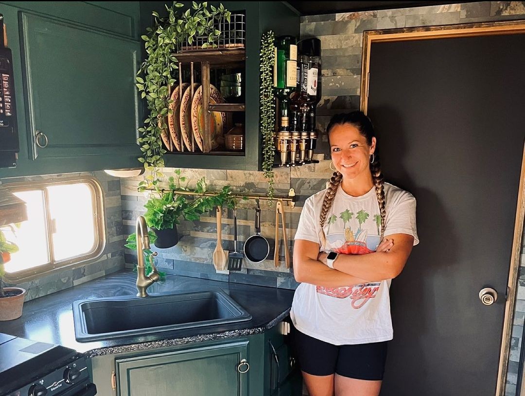 Janelle is a RV dreamer who is specialized in tiny living. If you are looking for RV renovation inspirations, she is the answer! Check out her amazing toyhauler kitchen transformation into a vintage glam kitchen bar😎