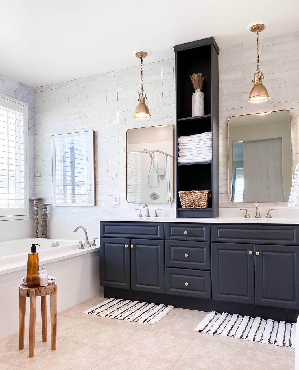 Carrie is a professional interior designer who is great at creating modern spaces with vintage textures. One of the most important things for interior decorating experience is maintaining the budget. For her On-A-Budget modern master bathroom renovation project, she chose Tic Tac Tiles' stone tiles!