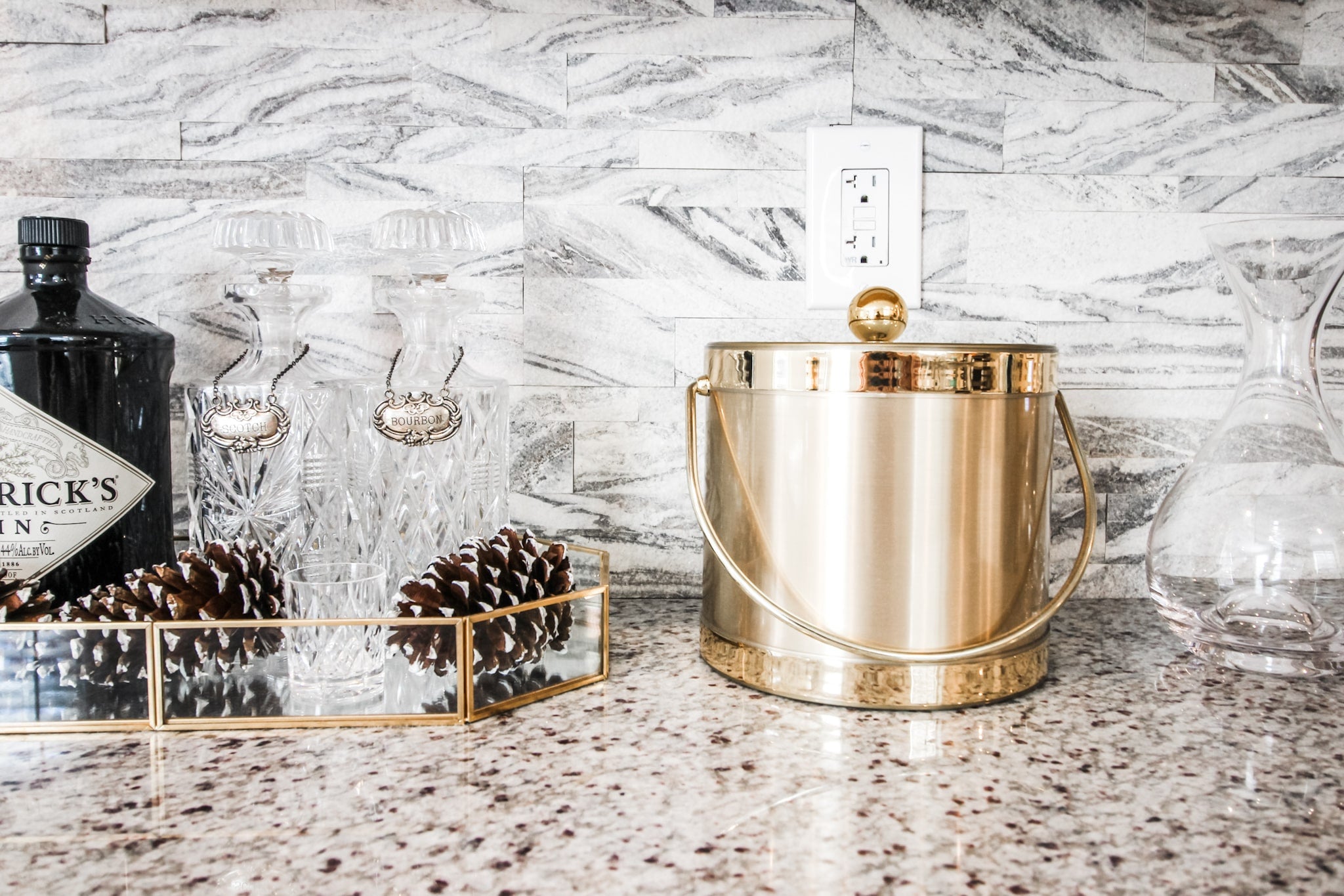 Anna is a lifestyle blogger based in Connecticut. She creates a luxury home bar with our gray sand stone tiles. Can't you believe it is a home and not a hotel lounge?Â
